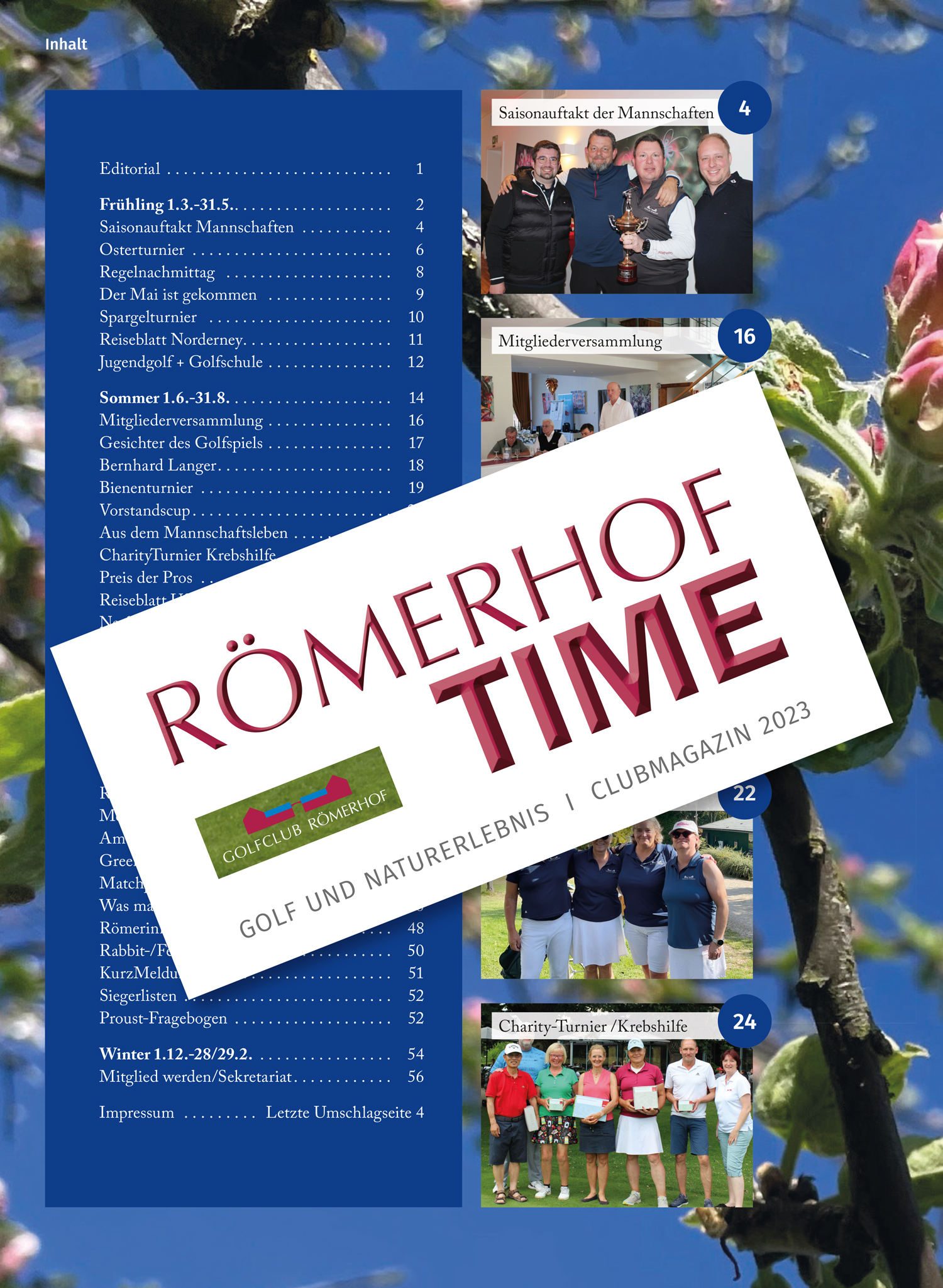 Einmal im Jahr werden die Golf-Ereignisse auf dem Römerhof in einem Jahresmagazin vorgestellt. Ein Jahr Golfen auf dem Römerhof, ein ereignisreicher Rückblick für jeden Golfer, ob Clubmitglied oder Gast. 60 Druckseiten Golfen, Siege und Niederlagen, Feste und freundschaftliche Begegnungen. Zum Jahresende kann man eine Golfsaison noch einmal Revue passieren lassen. Golfsport und Naturerlebnis auf dem Golfplatz sind die Grundzüge des Magazins.